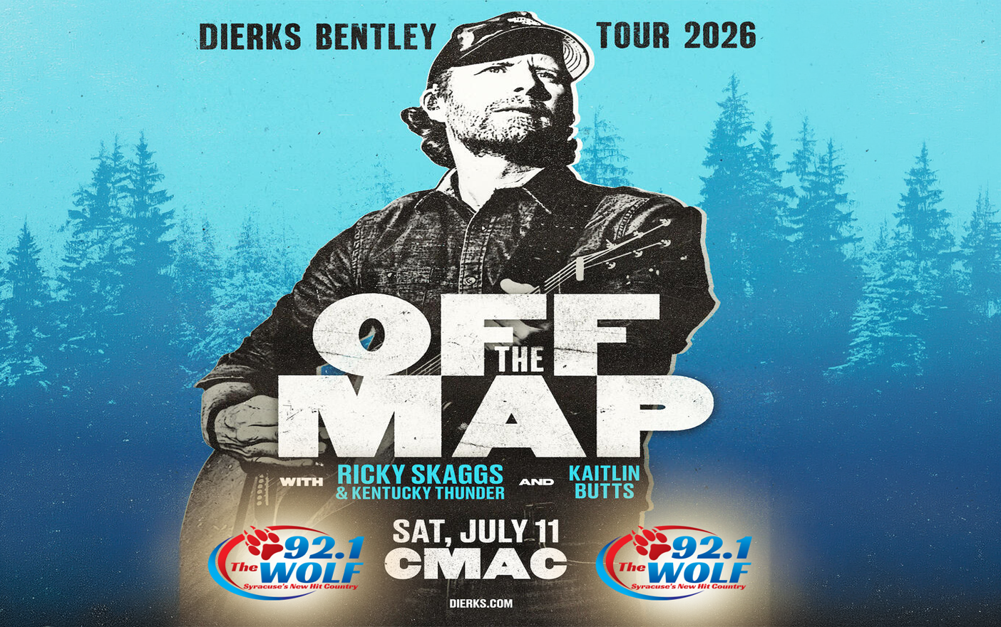 Dierks Bentley @ CMAC on July 11th Posted by reaganlapage on February 13, 2026 in WOLF Welcomes Share on Facebook Share on Twitter Dierks Bentley is coming to Central NY!